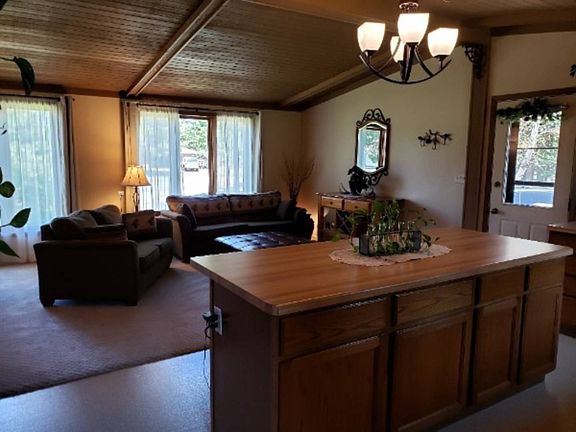 Presenting the perfect place for either a getaway or permanent home. Dining room, living room, kitchen combo shares a vaulted wood ceiling. New carpet Fall of 2017 and new windows in 2010. The kitchen has plenty of storage and includes a large pantry. A newer stainless-steel refrigerator and 7-foot island is great for baking or entertaining. The bedrooms are spacious with the master bedroom having a walk-in closet and its own entry to the bathroom. The full basement with poured concrete walls is dry and could be used to make additional living area. There is 1/2" thick interlocking rubber mat flooring over the concrete with a high 8' ceiling. Ten industrial shelving units and newer Whirlpool duet washer & dryer stay with the home. The secluded backyard is fully fenced, has perennial gardens and a great fire pit. Included is a 11'x11' shed with skylights on a 10" poured 15'x20' cement slab. The black-topped driveway, central air, city sewer & water and natural gas complete the package. Situated on a nice level lot, located close enough to walk to town, library, school and park. Has direct access to recreational trails. Ultra-high-speed internet and cable TV available. MUST SEE! Won't last long!