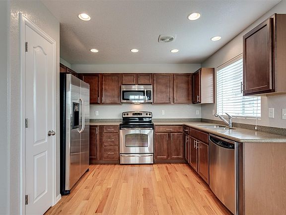 Priced to sell quick! This Ranch floorplan is completely updated! It has brand new carpet throughout the home, new appliances, new paint, new hardware and light fixtures. This beauty sits on a corner lot with a very well maintained lawn. Quiet neighborhood and low maintenance living. Easy access to E-470, I-70 and I-225.