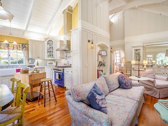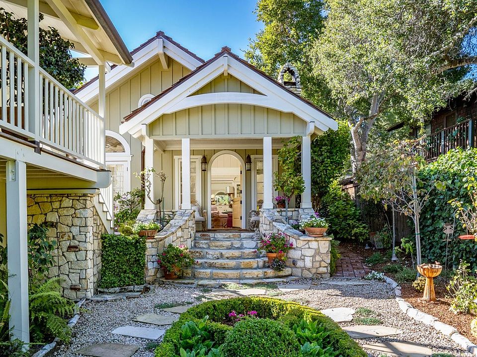 Welcome to Tinkerbells Garden, this charming property is the embodiment of a dream beach getaway. Tucked behind an antique French gate on a quiet street, youll find an idyllic garden perfect for bird watching or sitting on the porch after a long day at the beach. The main house enjoys vaulted ceilings throughout the living areas, kitchen and main level master bedroom. The second bedroom is nestled into a separate guest quarters above the garage, offering ideal privacy for those staying the weekend or on an extended visit. A designers dream meticulous attention to detail runs throughout every corner of this treasured home in the heart of Carmel-by-the-Sea.