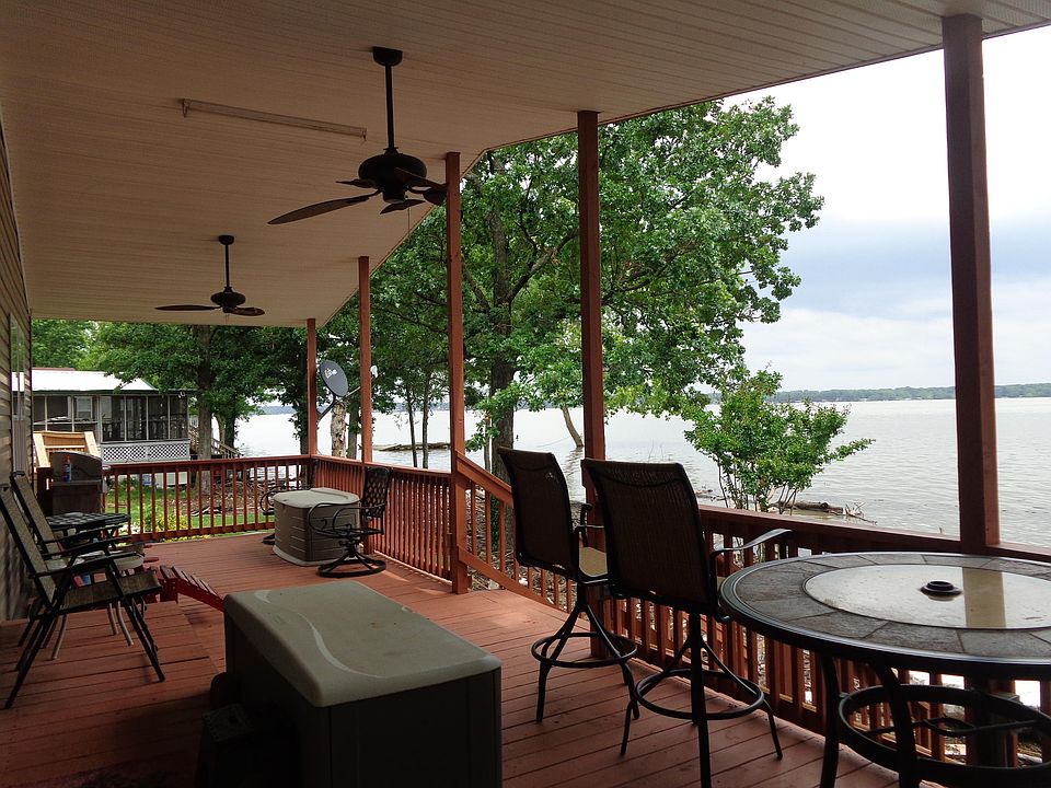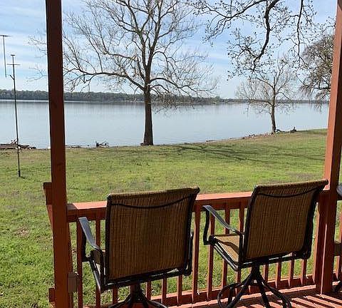 IMMACULATE HOME WITH WIDE OPEN WATER VIEWS AND GENTLE SLOPE. NOT DOCKABLE BUT VERY ''VIEWABLE!!'' 1800 SF, 3 Bd, 2 full baths (master has a huge walk-in shower) fireplace, huge kitchen, 2 car carport, workshop, handicap accessible, surveillance, this one has it ALL including large covered deck on back with awesome views and does not flood at the highest water level we've seen in years! Slip rental in the development.