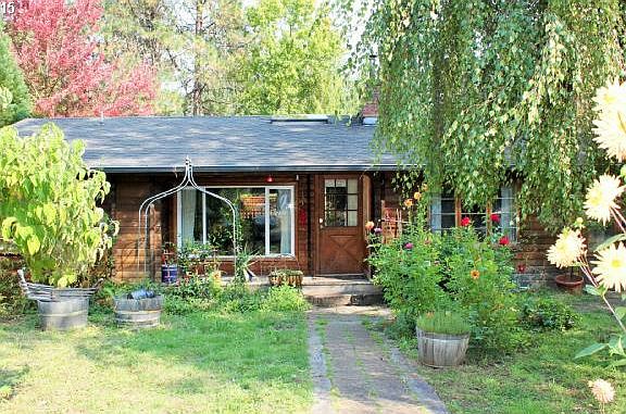 Cedar log kit home, 3 bedrooms, 1 large pantry/storage room off the kitchen. Remodel in 2007 included kitchen (granite counters, custom cabinets, stainless steel appliances, tile floor), new energy efficient windows, interior doors, Lopi energy efficient fireplace insert, bathroom update, expanded deck with deluxe dog house. Two fenced yards, wood fence behind house, chain link to the side. Three skylights, two in living room, one in kitchen. Quiet private location. Good schools. Two tax lots, gravel pad for RV parking with electrical outlets and septic. Good well with plenty of water, pump and wiring replaced 2014.