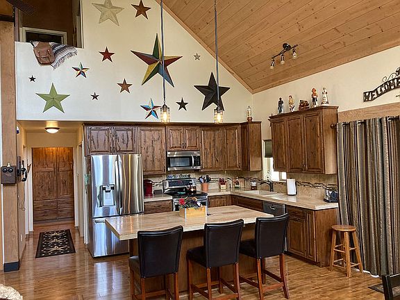 FANTISTIC property located on an acre lot in the Starlight Pines community backing up to a lush green belt, NOT other homes! A little over 1700 sq. ft. this two level, 2 bedroom 2 bath home with a loft/office area, has been completely remodeled. From the knotty alder door fronts on the kitchen cabinet's and downstairs bath vanity, the large wood beams attached to the tongue and groove vaulted ceiling, to the tiled walls in the shower/tub areas in the baths, a fresh coat of interior paint, plus a large kitchen island with pull outs that seats 4 adults comfortably. Light filled open floor plan, with the master bedroom, one bathroom, main living area and laundry room downstairs, while the loft area, 2nd bedroom and 2nd bathroom are upstairs. Recently added TWO 16'x16' COVERED horse stalls, with metal pipe fencing, a large appx., 20' x36' turn out pen, and a 7'x12' wood storage shed for yard tools and your equine friends needs. What a nice horse property! Jump on your horse and within seconds your on the wide, open tree filled green belt, heading off to connect to other green belts in the community or choose too within minutes reach one of many trail heads for tranquil/restful riding and or hiking in the beautiful surrounding national forest. Plan on running into rock cliffs, gulley's, rolling tree lined hills, and wildlife! Not only will you see deer and elk in the forest, they happen to take strolls thru the neighborhood and yes our lot almost everyday! Other improvement's beside those listed above. New asphalt shingle roof and water heater in late 2015 New American Standard Heat pump August 2023 Only 20-40 minutes to lakes or steams for a swim, kayaking or fishing. So there you have it. You cannot miss this fantastic mountain home and opportunity of living here! Amazing and location home for sure. Call or text 480-201-1371