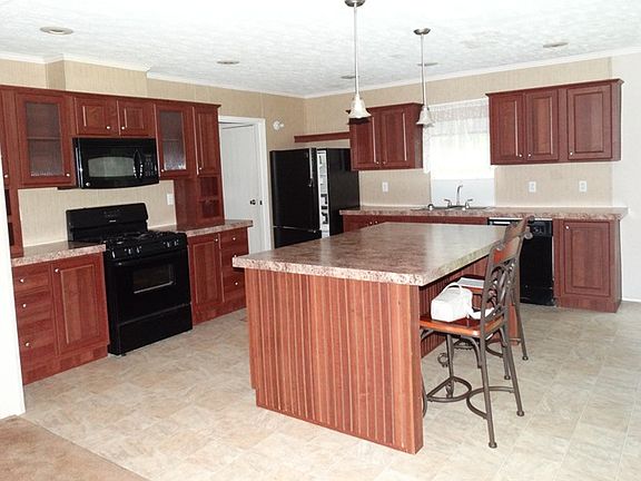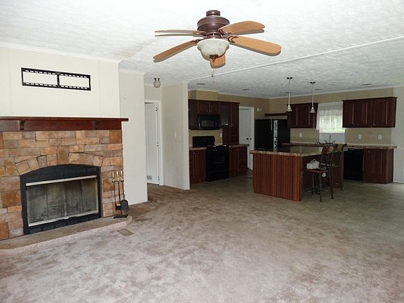 Come and spend your quiet evenings on your covered front porch listening to the birds sing. This 2008 doublewide on a permanent block foundation has lots to offer. This home includes over 1600 square feet with 3 large bedrooms, 2 full baths, kitchen with an island all appliances. The living room has a stone wood burning fireplace . The laundry room comes complete with washer and dryer. Home has central air and heat. Economical well and septic. This home is below appraised value and won't last long. Come and see it soon. Price $79000.