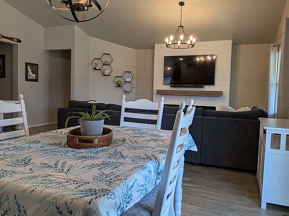 Beautifully Upgraded Home for Rent in Kuna First Time on Market! Come experience this hidden gem in Kuna! Available for the first time as a rental, this impeccably maintained home, owned and cared for by local military veterans (smoke-free, pet-free, and kid-free home), boasts thoughtful upgrades inside and out. Interior Features: Modern Kitchen Upgrades: -Heated water tank for instant hot water at the kitchen faucet -Stainless steel appliances with induction stovetop (includes stovetop cookware, $200 value) -Quartz island with farmhouse sink and stylish new backsplash (includes 2 backless gray stools, $150 value) Home Enhancements: -Wall-to-wall built-in shelving (a $2400 value) in Bonus Room (4th bedroom/office) -Shiplap accent wall with built-in electric fireplace and pre-mounted TV setup -Brand new carpet in bedrooms ('23), new laminate flooring ('22), and upgraded lighting throughout -Commercial-grade Maytag top-load washer & dryer and additional cabinets, shelving, and bench in the mudroom -Bluetooth speakers in bathroom fans for added luxury -Bedroom chandelier (optional, removable upon request) -Rheem water softener installed ('22) -Curtains (a $100 value) included and plantation blinds throughout (Master bedroom includes blackout curtains) -Master walk-in closet includes shelving 3-Car Garage and Storage: -Freshly painted garage with bright LED lighting and overhead storage racks -Attached outdoor shed perfect for lawn care and seasonal storage -Extra concrete poured in '22 for extra parking spot (4 total in front of home) Outdoor Living: -Huge 40' x 10' covered patio with lighting perfect for relaxing or entertaining alongside a firepit for cozy evenings -RV/Boat parking pad (50' long x 9' wide) -Manageable .30 acre lot includes low-maintenance flower beds and beautiful, healthy lawn thanks to annual weed treatments, and a retractable flagpole Location: Conveniently located near School Ave, Linder Ave, and Ardell Rd easy access to Meridian Rd/I-84, elementary/middle school bus stops and 1mile from Kuna High. Bonus: Property managers are the local owners military veterans who are committed to taking great care of both the home and their tenants! Tenants pay for utilities: --Water/Sewer/Trash is ~$100 --Electricity can vary depending on season from $60-150 --Gas varies depending on season from $15-100 --Internet capable with Sparklight and T-mobile Tenants responsible for lawn care. 1-year lease required (negotiable). Background and credit checks required. No smoking allowed inside home.
