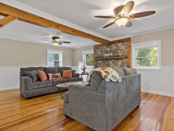 Brand New Septic just installed at this stunning garrison home on a private lot! The thoughtful renovations throughout enhance its charm while making it an ideal choice for families or those seeking extra space. You are greeted by a large driveway & oversized farmers porch, perfect for relaxing and looking at the river across the way. The first floor features plenty of space for entertaining with a spacious living room equipped with a fireplace & a separate sun drenched den. The kitchen boasts a brand new backsplash, granite countertops, plenty of cabinetry & stainless steel appliances. The kitchen flows into the dining space with a custom corner cabinet. The first floor also features a large breezeway, a full bath with laundry hookups & an office space. Upstairs you’ll find 3 bedrooms. The primary suite hosts 2 closets, an entrance to the second full bathroom & a private bonus room to enjoy views of the river. The deck overlooks nature trails & your own barn for all hobbies