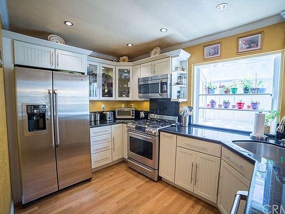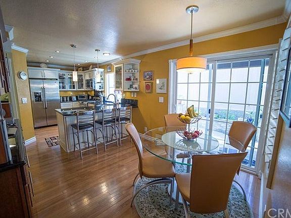 CDS location. Hardwood floors and crown molding, louvered window covering and wood cased low E windows. Designer front and interior doors. Custom kitchen w/raised ceiling, custom cabinets and granite counter tops. GE Cafe stainless steel appliances: refrigerator, 5 burner stove, microwave and dishwasher. Dual pane garden window and recessed lighting. Large pantry. Breakfast nook w/custom built-in granite top buffet. Hall nook w/built-in granite counter top leads to a vaulted ceiling living room and FP w/granite mantel and matching granite entry way. Low E slider leads to entertainer's backyard: covered patio and large gazebo w/gas BBQ, refrigerator and wrap-around bar that can seat 8 adults. Customized hardwood staircase and balusters inc's office area off second level hallway. Master bedroom suite has been redesigned to maximize the master bathroom. Exquisite glass top dual vanity, large hand crafted shower w/ seamless glass doors and walls plus separate extra deep soaking tub with circulating jets. Master bedroom has vaulted ceilings. Martin Logan recessed surround sound speakers and Walk-in Closet and California Closet organizers. Half bathroom downstairs w/designer vanity and mirror. Landlord will pay HOA fees.