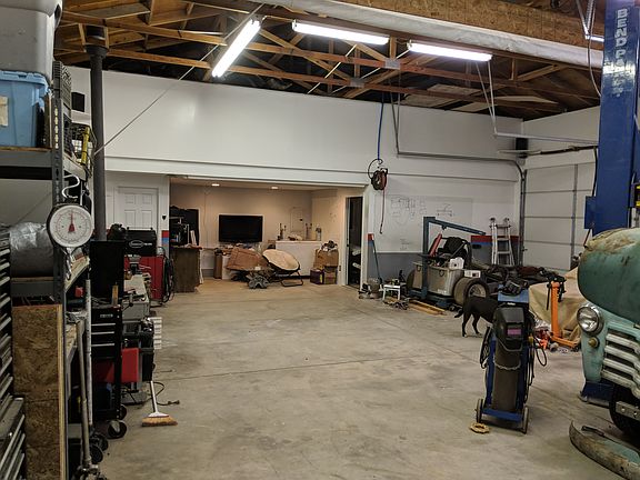 With large windows & an open floor plan, this home is flooded with natural light. French doors lead to a panoramic view of 1 acre of fenced yard. Updated kitchen with stainless appliances, contemporary tiled bathroom, & hardwood floors offer modern luxuries. The expansive shop offers radiant heat, car lift, retractable stairs to loft for additional space, & hobby room. Large garage doors offer access for a multitude of projects.