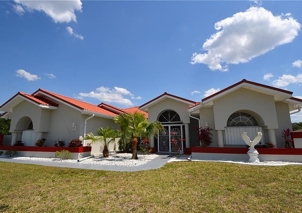 DEEP CREEK! 3 BD, 3 BA MEDITERRANEAN STYLE POOL HOME ON OVER ¼ ACRE CORNER LOT IN HIGHLY SOUGHT-AFTER COMMUNITY! Open floor plan with over 2,500 sq. ft. of living area with many architectural details. Arched entryways, cathedral ceiling, skylights, large windows and sliders for plenty of natural light and ceramic tile flooring throughout the main living area and master bedroom. Updated kitchen features solid wood raised panel cabinetry, granite countertops, tile backsplash, built-in double oven, large center island, closet pantry, breakfast bar. window pass-thru to lanai and leads to family room with built-in wet bar. Spacious master bedroom with french doors, double slider to pool and private ensuite with dual sinks, vanity, bidet, raised jetted tub and walk-in shower. Two guest bedrooms, full guest bath dual sinks, pool bath with shower, and inside laundry. Inviting outdoor entertaining area with covered lanai, screened pool and tile decking. Additional features include screened front entry, 2-car side garage, newer metal roof, well irrigation, 2 a/c units, accordion hurricane shutters, central vacuum and security system. Deed restricted community with county water and sewer conveniently located to I-75, restaurants, shopping, golf, boating and all amenities. DON'T MISS THIS OPPORTUNITY! CALL TODAY!