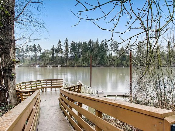 Incredible 1.24 acre gated property w/river frontage! Spanish-style villa featuring open floorplan, authentic details & sweeping river vistas. Spacious living & dining rooms w/hardwoods, large fireplace, high ceilings w/exposed beams & wall of windows. Massive master suite w/private bath, deck access & romantic fireplace. Double lot w/expansive lawns, fruit trees, huge tile deck & premium dock. Potential to convert garage & add SF.