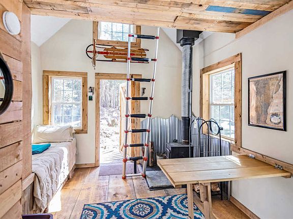 Your cozy and secluded paradise awaits! From the moment you cross the cedar footbridge over Alder Brook, you'll know you're somewhere special. Featured in Boston Magazine and CabinPorn, Alder Brook Cottage is an inspired, rustic dream cabin located in the woods of Vermont's Northeast Kingdom. Surrounded by a crystal clear stream and 1400 acres of rugged forest, it is the perfect off the grid getaway for glampers looking to experience the tiny house life. To get to this charming tiny home, youâll cross a wooden footbridge over a stream and climb a rocky staircase into the forest. After a couple hundred feet, the house appears through the trees. Inside youâll find a sunny and welcoming space that is perfect for relaxing in the beauty of the woods. There is a kitchenette with a stove and pots and pans, a shower room, a fold-out daybed, a wood stove, a pull-down table, bookshelves and a loft with the most comfortable queen mattress in Vermont. Outside, you'll find an outhouse with a composting toilet. Summer, fall, winter, spring â the cabin is like something out of a fairytale. And for those looking to experience the nearby area, you are just minutes from Caspian Lake, Hill Farmstead Brewery, and Craftsbury Outdoor Center for some added fun. This property has been used as a successful seasonal Airbnb rental for the past four years. Important to note: this home does not have running water, sewer or electricity.
