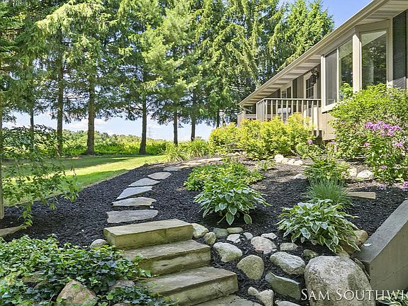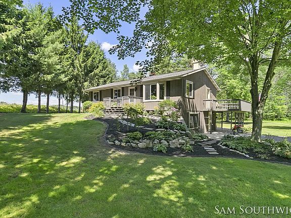 Imagine after a long day at work pulling into this meandering paved drive under a canopy of mature trees and experiencing the sense of peace and tranquility that only a country retreat can offer. Surrounded on all sides by farm fields, it's hard to imagine that this almost 7 acre sanctuary is conveniently located only minutes from Meijer's, US 131 and just a short commute into greater Grand Rapids. Amazingly remodeled throughout and meticulously maintained this 5 bed, 2 full bath home will surely impress the most discriminating buyer. Entering through the cozy Living Room take note of the real Wood Burning Fireplace and panoramic view provided by the large Bay Window. The spacious Chefs Kitchen features high quality soft close Cherry Cabinets, Granite Countertops and Ceramic Tile flooring. Exiting through the sliding patio door in the adjacent Dining Area is a huge wrap around Deck with great views of the beautiful Park-like Backyard with frequent visitors such as Whitetail Deer, Turkeys and Wood Ducks. There are 3 spacious Bedrooms on the main floor and an amazing Remodeled Bathroom with Double Vanity Sink, Jetted Tub, Modern Walk-in Tiled Shower and Ceramic Tile flooring. Heading downstairs to the Walkout Level are two additional Bedrooms, a Family Room and another recently remodeled Modern Bathroom with Walk-in Tiled Shower. There is also a highly functional Laundry/Mudroom combo that is ideal for managing all the dirty clothes and stuff that tends to find itself inside compliments of mother nature. Located just outside the side entrance of the house is a super clean 30 x 40 Pole Barn with power and a concrete floor for all your utility and storage needs. Walking towards the acreage out back is a Fieldstone Fire Pit with Bench Seating where after an evening stroll along the nature path you can share s'mores and stories with friends by the fire. The investment the sellers have made in remodeling and upgrading this home is too extensive to list here. Be sure to check out the attached list of all the updates and features that this amazing property has to offer. It's not very often a property this unique and move-in ready hits the market, so call to schedule a private showing ASAP.