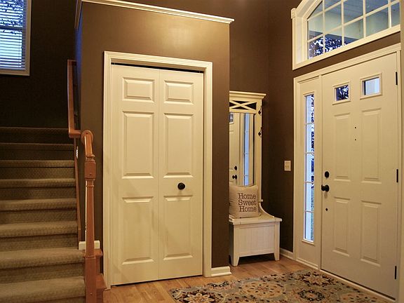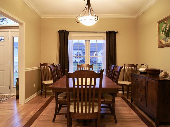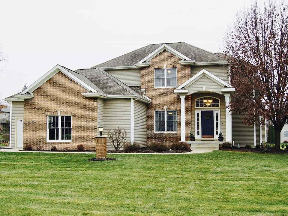 Enjoy the Heritage Lake Park lifestyle in this custom built 3,200 finished sq. ft. home. Boasting modern amenities beginning at the welcoming foyer. Soaring ceilings in this entry way allow for the open concept into the dining room with hardwood floors throughout and into the living room with brick fireplace, adjoining breakfast area and open kitchen with ample cabinetry, granite counter tops and bar seating. Featuring a main level master suite, three spacious upper level bedrooms plus a secret play room! Finished daylight basement with family room and recreational area plus a guest room and full bath and an unfinished storage room and closet. Entertain or make memories in the large backyard pavered patio with fire ring and basketball hoop just off the open deck!