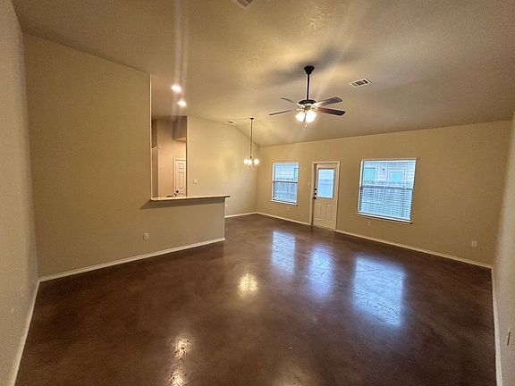 This beautiful luxury duplex features stained concrete flooring throughout, soaring ceilings, and elegant granite countertops. The kitchen comes fully equipped with all appliances. The spacious main bedroom offers vaulted ceilings and a generous walk-in closet. The master bathroom includes a double vanity and granite countertops. Enjoy the privacy of a fenced-in backyard with a 10x20 covered patio, complete with a ceiling fan. Located in New Braunfels ISD, with Voss Farms Elementary just down the street. Close to Fischer Park and includes easy access to IH-35.
