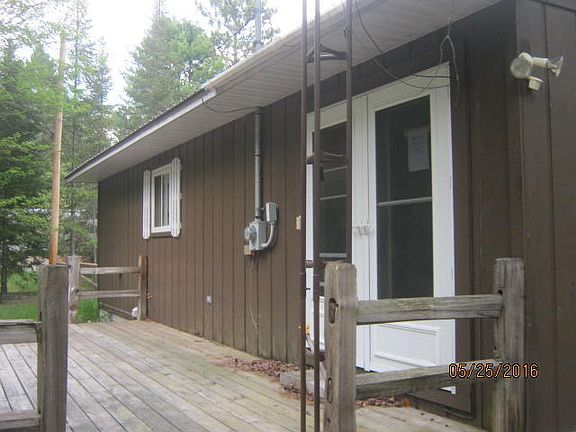 This home, on large wooded lot, is located in a private location. The front yard is fenced, a large deck at rear of home, storage shed and detached garage, add to the setting. Year around living for either a primary residence or get-away cabin. This is the location many buyers are looking for. '' Property is being sold As-Is, Where-Is. All inspections are done at buyer's expense, seller will not activate utilities.
