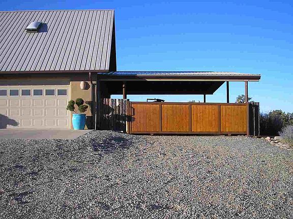 Looking for a great property for a really good price? This delightfully well built home is located in the desirable Art Barn community just southeast of Santa Fe on almost 7 acres of rolling hills with valley and mountain range views all around! The home offers a Northern New Mexico pitched roof design with 3 bedrooms/3 baths, large entertainment room, an enclosed courtyard entry with water feature and Sangre Mtn views. The big plus is a huge 4 car insulated and heated garage for special car storage, work shop or whatever your need may be. In addition there is a 2nd story heated space for a studio, playroom or just storage of your collectibles! A large enclosed and covered carport is also attached. So much is included with so many options for use! Many Community and commercial offerings are located nearby for shopping convenience. A must see property!