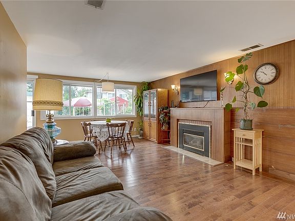 Don't miss this well cared-for rambler with 3 bedrooms and an updated bath. The bright kitchen has tile floor and counters, and newer stainless steel appliances. Hardwood floors run throughout the rest of the home, and the living room has a gas fireplace perfect for cool fall evenings. A sliding door opens out to the fully fenced back yard, where there's an expansive deck and patio for entertaining and outdoor fun. On a quiet street, just minutes to Boeing, shopping, services and transit.