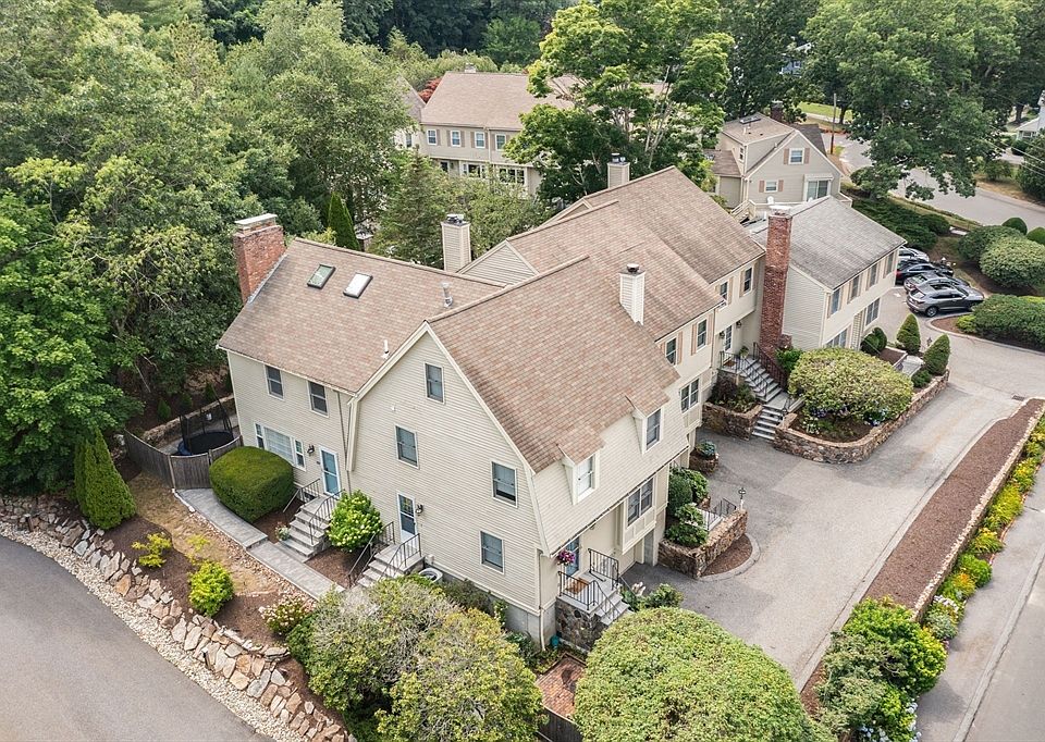 Convenient condominium living in this 4-level townhouse located in the desirable Pleasant Ridge Association. Just a few blocks from Linden Square restaurants, shopping, groceries, coffee shops, train to Boston and all that downtown Wellesley has to offer. Sunny end unit with private back yard and patio for outdoor enjoyment and area for gardening. The first floor features a family room with fireplace open to the dining area with sliders to the patio, granite kitchen with stainless appliances and full bath. The 2nd floor offers the primary bedroom with huge walk-in closet and door into hall bath with large tub/shower and double sinks, 2nd bedroom with stairs that lead to the 3rd floor skylit bonus room/home office or more bedroom space. Finished lower level recreation room with fireplace, laundry and storage. Two assigned outdoor parking spaces. Don't wait, this won't last!