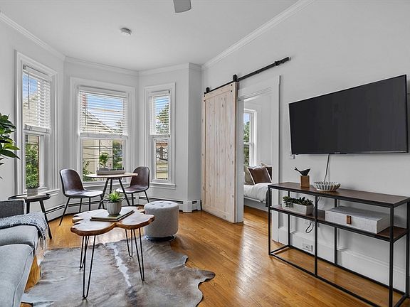 Welcome home to this stylish urban retreat nestled nicely in a charming brick building on a tranquil one-way street between the vibrant Assembly Row and the trendy Union Sq. and just a short distance to the Green and Orange lines. Step inside and discover an impeccable floor plan that seamlessly blends modern elegance with clever comfort. This front-facing second-floor haven welcomes you with a picturesque bay window that floods the space with natural light, thanks to its inviting southern exposure. The upgraded kitchen is fully equipped with sleek granite countertops, stainless steel appliances, and ample storage space. Indulge in beautiful views of the Back Bay and Boston while dining or retreat past the sliding barn door to the bedroom featuring its own en-suite. Outside, a common back yard and patio beckons for al fresco gatherings. Private storage and common laundry on-site. What an incredible time to invest here with a series of mega projects in the works around Sullivan Square!