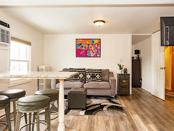 Totally renovated, ultra modern 1 bedroom, 1 bath furnished apt w/laundry onsite. Gorgeous "penthouse" top floor in multi family boasts on open concept w/gourmet kitchen. Features living rm, modern eat-in kitchen, 1 bedrm, den/office & 1 full bath. Highlights incl: granite counters w/slow close cabinets, all brand new ss appliances, 5 burner stove w/designer exhaust hood, dishwasher + the refrig is provided! 2 brand new beautiful built in wall a/c units w/remote, 2 wall mounted 32" TV's w/Roku & 4 super comfortable, cushion top, bar stools for use at the gorgeous granite coffee or wine bar! Brand new laminate flooring. Completely renovated brand new tile bath w/pedestal sink & mirrored vanity cabinet. Plenty of light, an airy feel flow through the brand new windows. Excellent amount of closets & plenty of storage space. Tenant responsible for all util, on street parking, no pets, smoke free building. Coin-op laundry in basement. LL pays 50% of broker fee, tenant the other 50%. Furnished Penthouse apartment. Property is tenant occupied. Landlord pays 50% of brokers fee, tenant pays the other 50%. Subject to rental application, credit, income and reference verification