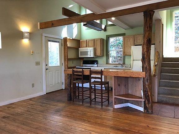 Looking for a home conveniently located inside Bryson City Limits? Here is a great one. Walking distance to downtown, this adorable home comes with a lovely guest house, as well. Live in one and rent the other, or purchase as a great investment property. The main house is a two bedroom/1 bath with the Master on the main floor, access to bath from the Master and the living area. At the platform of the U-shape staircase is a slider opening on to a small, private deck perfect for reading or watching the birds. The front deck is partially covered and spacious The kitchen/living area is open and bright. Contemporary design. Stack washer/dryer in Bath. Numerous windows let in light and allow a view of this most interesting property. The guest house is a 2 story with an awesome floor plan that utilizes every inch of this 480 sq. ft. charmer. Functional kitchen and lovely dining area with washer dryer hookup and good storage under staircase. Upstairs a lovely loft style bedroom with sitting area and desk. Covered deck off the bedroom with room for two.