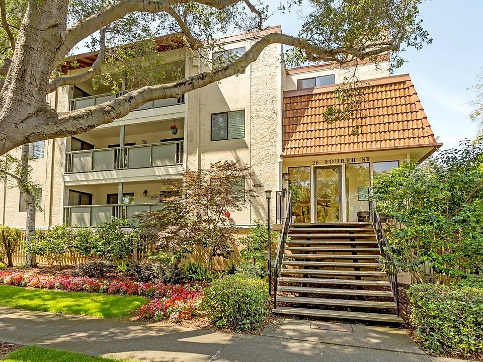 Light and bright condominium in downtown Los Altos. Located on the second floor in a small complex of just 15 units. Secure lobby entrance plus elevator access from gated underground parking. Spacious, light-filled living and dining room combination with sliding doors to the expansive balcony for outdoor living. Kitchen with ample cabinetry, beautiful new quartz slab countertops and tile flooring. In-unit laundry. Community pool and patio. Premiere downtown location just one block to shopping and dining. 2 Assigned parking spots! One underground one outside.