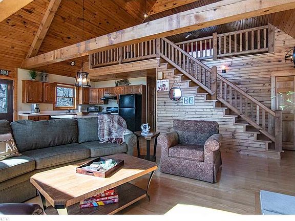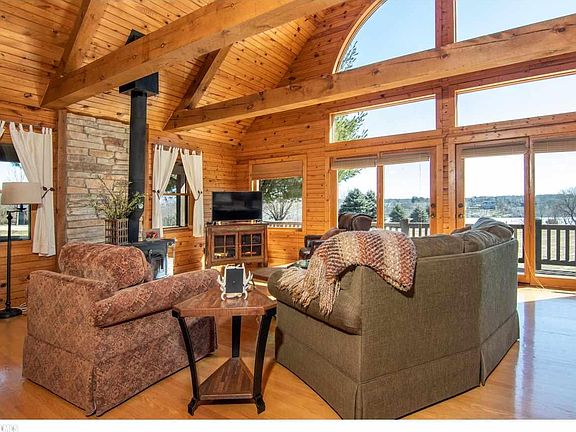 PERFECT LAKE HOME WITH GREAT BIG LAKE VIEW. This is the one you have been looking for! Rustic log sided Upscale Cabin on beautiful street near the lake with BIG view. Dramatic 2 story great room with open floor plan and fully finished Lower level. Plenty of space for guests with master bedroom and bath in the loft, 2 bedrooms and full bath on main level and another bedroom and full bath in walk out lower level. The main floor great room has a free standing wood stove, The finished LL has a huge family room. All set on a 2.01 acre lot backing up to a greenway leading to the lake. Furnishings negotiable.
