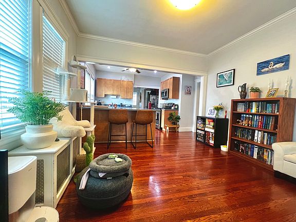 Tree top views from this Oak Square 1280 s.f. condo. Private entrance Philadelphia-style home with rear balconies which were recently redone with high-quality composites and pressure-treated wood. Sitting on a dead-end street . Open floor plan features an updated kitchen w/cherry cabs, Corian countertops and breakfast bar. Completely renovated full bath. 1000 s/f attic is 50% finished and is deeded to unit. Deeded laundry in the basement, parking for 1 car, private fenced-in yard. 3 bedrooms with enclosed front balcony with large windows and great views.