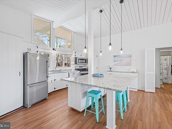 Delightful beach cottage located on a nearly half-acre lot in the private community of Middlesex Beach, just steps to the Ocean and minutes from the Bethany Beach boardwalk! This one-story coastal retreat features an impressive great room with soaring ceilings and open floorplan that combines the dine-in kitchen with the living area. This space opens to an expansive 3-season room that offers an additional area to dine as well as a gathering space. A breezeway connects the main home’s 3 bedrooms and 2 full baths with an additional wing that provides the flexibility to enjoy 2 more spacious bedrooms and an additional full bathroom. This property is full of coastal charm with exposed-beam wood ceilings and wide plank wood walls all painted a crisp white for a bright an airy feeling. Walk just a few short blocks to the beach or drive over and utilize the private beach parking lots as a resident of Middlesex Beach. Offered furnished, this home is turn-key! Situated on a quiet non-thru street and nestled among mature pine trees, this is the perfect location to feel tucked away from the crowds yet close to the beach, boardwalk, restaurants and entertainment.