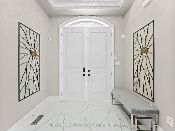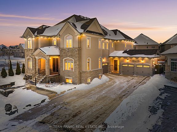 An exceptional offering in the prestigious Castlemore community, just minutes to Toronto and Vaughan. Built in 2017, this one-of-a-kind custom residence spans approximately 7,900+ sq. ft. of refined living space and showcases architectural elegance throughout. **Legal Finished Basement**. This **exclusive model-never replicated-**features a rare 4-car garage and over $400,000 in premium upgrades (see attached list).Set on a premium, private lot with only three residences at the end of the street, this stunning 6+1 bedroom detached home delivers both luxury and seclusion. The main level boasts soaring 10-foot ceilings, a grand welcoming foyer, a private formal living room, and a main-floor bedroom ideal for guests or multi-generational living. A wide central gallery leads to a breathtaking 22-foot double-height dining room, seamlessly flowing into the expansive open-concept chef's kitchen. The kitchen is appointed with built-in appliances, an oversized pantry with servery, and a sun-filled breakfast area, perfect for both everyday living and upscale entertaining. A fireplace anchors the main living space, enhancing warmth and sophistication. Crown molding and waffle ceilings elevate the craftsmanship throughout the home. The lavish primary suite offers a true retreat, complete with a custom-designed walk-in closet, bespoke cabinetry, and a private fireplace. A rare opportunity to own a statement residence in one of Brampton's most sought-after enclaves. All 5 Upstairs Bedrooms Has Its Own Private Ensuite. Stretch Ceiling In Basement Theatre Room And Games Room. Exotic Chandeliers In Most Rooms Of The House. Private Backyard With Hot Tub, Gazebo, Sprinkling System, And Interlocking Stones In The Backyard. Custom Gym In The Finished Basement.