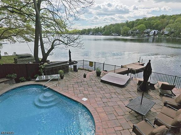 Tropical paradise on Lake Hopatcong!Stunning lake front home, in ground salt water pool with custom landscaping. Main flr features LR w fireplace, DR, updated kitchen w SS appliances, granite counters Custom cabinets, pantry, cathedral ceiling, skylights. Covered deck overlooks lake and pool. Pool area w waterfall, hot tub, outdoor fridge kegarator, bar, granite counters. First Fl. office bdrm, in suite bath, possible in-law suite, family room home theater, leisure room w wet bar. Upper level w MBR, built-in entertainment system, vaulted ceiling, 2 walk in closets, sliders to deck, custom widows, window seat. Master bath w tub, built in TV, dual vanity, 5? by 5?shower steam room, sky lights, radiant heat floor, urinal. Balcony connects to bdrm, bath, laundry. More photos coming soon!