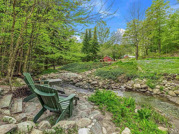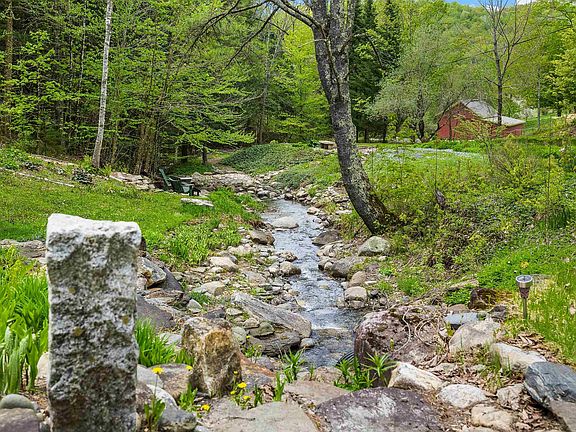 Stunning property on a quiet country road in the quintessential Vermont town of South Strafford. This 3.5-acre property offers meticulous craftsmanship and design providing a peaceful oasis. The nurturing gardens and natural meditation spaces and soothing sounds of Alger Brook allow this to be your home sanctuary. The home is a Contemporary masterpiece featuring three bedrooms and three baths, with ample natural light throughout. The gourmet kitchen, designed and built by the best of Vermont craftsmen, showcases custom Brazilian granite and cherry cabinets, creating an inviting and elegant space that connects with the spacious living area, complete with a wood-burning fireplace. Every detail has been carefully considered, from exceptional lighting to flooring, window placement, and custom built-ins crafted by skilled artisans. The bedrooms offer whimsical spaces and charming character, with thoughtful details throughout. The property also includes well-manicured gardens, balconies strategically placed to capture views of the local hills, and serene meditation spaces. Conveniently located near Coburns General Store, the Newton School, Strafford Edible Pocket Park, Public Tennis Courts, and Harrington Hill for winter skiing.