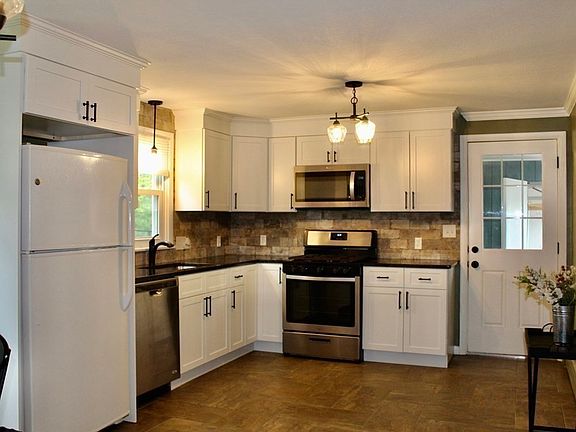 This adorable 4 bedroom, 2 bath Cape Cod Style Home boasts 1680 Sq. Ft. of living space, with an additional 3 season porch for your enjoyment. This home has been completely redone, all by Lic. contractors and the owner’s excellent taste! It would be hard pressed to find anything in or on this property that hasn’t been replaced, remodeled, upgraded, cleaned, painted, or otherwise, including mechanics, and a new fence that surrounds the back yard with a terrace entry from the porch for your grill and outdoor furniture. This home is nestled against a wooded area, near a park, on the end of the non-throughway for extra privacy. The remodeled Eat-In Kitchen/Dining Room is wide open to a cozy Living Room with a refinished modern stone faced, wood burning fireplace. There is a remodeled full bath to on the first floor. The full dormer and the width of the house adds to spacious bedrooms on the 2nd floor w/extra closet space and the 2nd fully remodeled bath. 2-car garage is oversized.