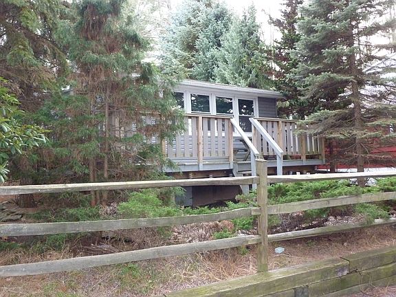 Walk to Lake Wallenpaupack and an available boat slip from this low maintenance ranch home featuring 2 bedrooms, 1 full bathroom, kitchen, living/dining room, vinyl siding, large front deck and storage shed.