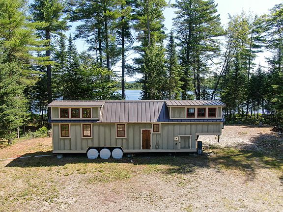 Your Tiny Home retreat awaits! This Timbercraft Premier Tiny Home is on 5.1 surveyed acres with approximately 550ft of waterfront on Mattanawcook Pond. The Tiny Home has 1 bedroom and 1 full bath with all the comforts of home, including a dishwasher, on-demand water heater, and plenty of storage. There is power on site, a drilled well, and a full graywater system. The tiny home has an incinerator toilet that produces very little waste.