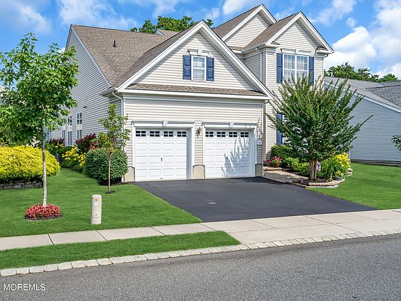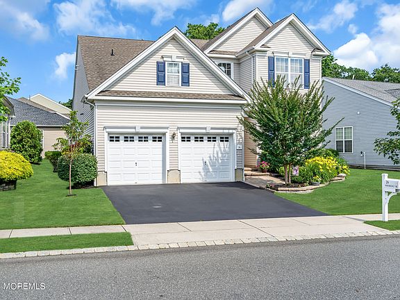 Explore your ideal residence in an energetic active adult neighborhood! This stunning Farmington model features 3 bedrooms and 3 full bathrooms, highlighted by custom plantation shutters throughout and elegant tray ceilings in the primary suite and dining room. The office provides custom built-in cabinets for storage and organization. The entire house has recently been freshly painted. Relax by the cozy fireplace in the living room or step out to the private patio. Situated near the clubhouse with outstanding amenities such as an outdoor pool, tennis/pickleball courts, bocce, jogging paths, and more, this home offers a luxurious lifestyle. Conveniently located close to major highways, dining, shopping, and a short drive to Atlantic City, this residence combines comfort and accessibility. Upper windows are tinted to protect flooring and furniture, security system in place. Primary suite closet features a custom organization system.