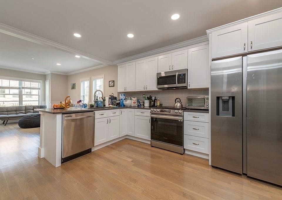2023 new construction 3 family dwelling has (3) spacious 3 bedroom/2 bath units. Unit 2 is at the second floor with top of the line finishes. Hardwood floors, crown moldings + chair railings, shaker kitchens w/solid surface countertops + gas cooking. The bedrooms are all spacious and have ample closets, and there are two bathrooms, each with fashionable tile selections. In unit laundry. a clean storage basement, HVAC w/AC + superior life safety with a sprinkler and fire alarm system round this one out. The exterior features 3 parking spaces and a patio. Very desirable Brighton location. Renter is responsible for gas, electric and water