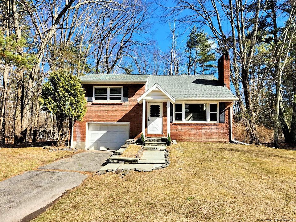 Welcome to your charming 3 bedroom, 1.5 bath brick home on a spacious half-acre lot! As you enter you will find the living room with wood floors and a wood burning stone fireplace. Fireplace chimney was cleaned within the last 7 years and not used since. Up a few steps is the dinning room, which overlooks the living room. The kitchen is open next to the dining room. All three bedrooms and the full bath are on this level. The finished basement adds additional living space, and the fact that it walks out to the backyard is a great feature. The laundry room and half bath off the basement are also conveniently located. Water system with softener is owned. The garage is accessed inside from the finished basement. The house sits nicely off the road with mature trees and backyard is ready for your creativity. New septic tank was installed in October 2022. House under 2 miles to Woodstock Village.