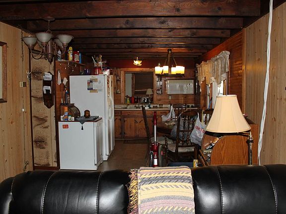 One of the lakes most spectacular view and locations, Paradise Way which is near the end of Wilderness Road. The property is lake front with a dock, easy access and a groomed trail to the dock. The property fronts one of the well known swimming areas and island, surrounded by water. The log home was built from logs harvested from the 1 acre lot and has recently been stained and re-chinked, basement (poured concrete) is partially finished with a 9' x 20' storage area and a 23' x 33' detached garage.