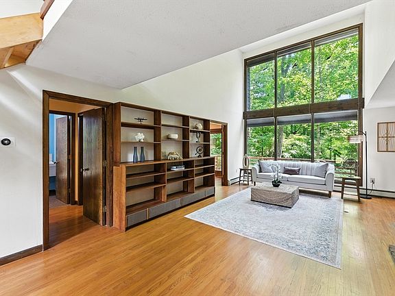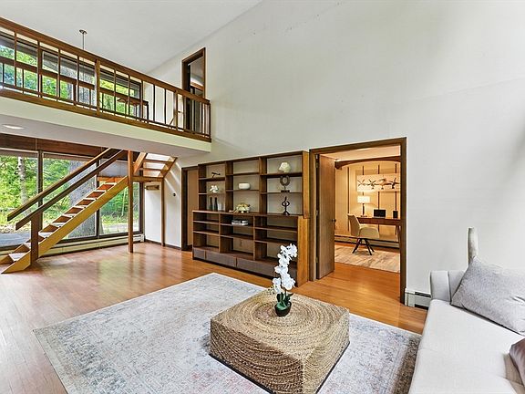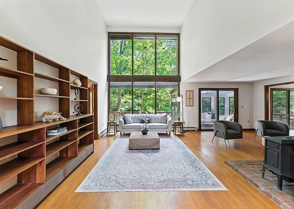 Welcome to this charming, impressive & private home located w/ in walking distance to Mt Holyoke College & mins to the Village Commons. There is an abundance of space that is ready for a new family to create the same great memories that were created over the last +/- 40+ yrs. Still has a lot of its original character & charm, from the wood flooring, shelving in the study, living & family rm to the incredible flr to ceiling windows & the open flr plan as well, to the 5 sliding glass doors that provides a ton of light while over looking your private wooded lot. Need a 1st flr bdrm? The study could be a 1st flr suite as a full bath is located right next to the study. An elegant dining rm, large eat-in kitchen w/ pantry closet, spacious mudroom, screened in porch & wet bar (in the liv rm closet) complement the 1st flr. There are 4 good size bdrms including a wood stove in the main bdrm suite w/ a full bath & walk-in closet. The finished rm in the basement could be a 2nd office or game rm.