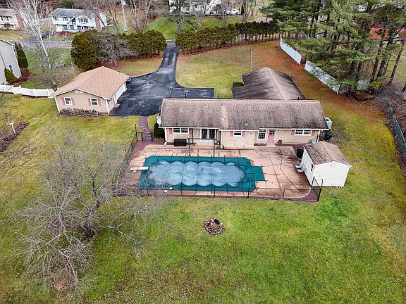 Nestled on a dead-end street in Essex Junction, Vermont, this 2,420-square-foot ranch-style home offers privacy and convenience. This single-family home is set on a large and private 1.02-acre lot that backs up to a wooded area. It features 3 bedrooms, 2.5 bathrooms, an in-ground pool, and a detached 2-car garage. The semi-open dining room and kitchen is perfect for gatherings. The kitchen has stainless steel appliances and plenty of cabinets. The spacious living room has a large window that fills the space with natural light and a cozy sitting area with double doors leading to the back patio and pool. The primary suite includes a walk-in closet and a bathroom with a tiled step-in shower. Two additional bedrooms share a Jack-and-Jill bathroom, while a large bonus room offers versatility as an office, gym, or extra living space. The backyard is designed for outdoor enjoyment, featuring a patio with a grilling area, a shed near the pool for convenient storage, and a level green space ideal for gardening. Located close to schools, shopping, and trails, this property offers space and privacy in a prime location. Make an appointment to view this property today!