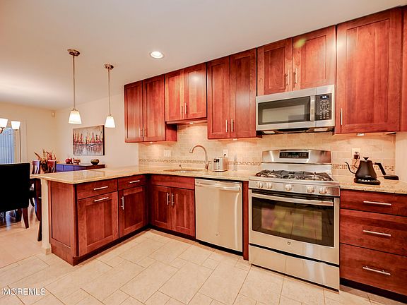 Amazing 3 Bed, 3.5 Bath Oak Ridge Manalapan Townhome, spacious full finished basement with full bath; high ceiling garage.  Updated Kitchen, Stainless Steel appliances, granite countertops, pantry, updated 1/2 bath, dining room with sliders to the beautiful private extended deck backing to trees makes this the perfect home! The upper level has 3 bedrooms, 2 full baths, Primary bedroom has a vaulted ceiling with ceiling fan, attached full bath a large linen closet, Walk-in closet. Large closet in hallway plus another large linen closet , a bonus area for a desk or anything you want it to be.  Neutral Throughout. Owners have meticulously maintained this home! All you need to do is unpack relax and enjoy your new home!