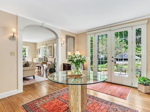 Beautiful Georgian style Colonial in one of Watertown’s most desired neighborhoods. This treasured home on an expansive 20,000 SF lot is bordered by mature and lush plantings, providing beauty & privacy. Upon entry, an amazing foyer streaming w/ sunlight merges into a relaxing front to back living room w/ a grand fireplace & an elegant dining room w/ ample seating; both rooms contain tall Georgian style windows w / lovely views of tranquil yards. Spacious chef's kitchen w/ large center island, high-end appliances, cozy breakfast nook w/ lots of windows & French door that overlook huge mahogany deck & yards. Secluded off the kitchen is a large study / possible au-pair suite w/ cathedral ceiling, full bath, walk-in closet & direct access to exterior. The second level features 4 corner bedrooms, 2 full baths, spacious primary bedroom w/ luxurious spa-like en-suite bath complete w/ shower, soaker tub & walk-in closet. An exceptional home for a lifetime of enjoyment & relaxation.