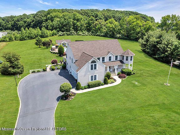 Executive Style Living situated on 3 Acres. This Estate Style Home Features an Expansive Floor plan and amenities typical of a discriminating life style. Beautiful outdoor living area, not to mention the In-Ground Pool and Pool House with Kitchenette and full bath.Home features Large Kitchen with center island, Granite Countertops, and Breakfast Nook, which flows into a 2 Story Great Room with Gas Fireplace all with Hardwood Floors! Sliders open to a Covered paver patio complete with Outdoor Bar and Television. Dining room with Hardwood and Decorative Molding. Formal Living Room is carpeted with Built Ins. Not to mention a first floor Bedroom with adjacent Full Bath! On the Second Floor you will find a Master Suite complete with sitting area, tray ceiling, walk in closet and full Master Bathroom, with Oversized Shower featuring mulitple shower heads. The second floor features two additional Bedrooms, plus a Bonus Room/ Bedroom, and Loft area which is currently utilized as an Office. Oversized Laundry Room and Full Bath!