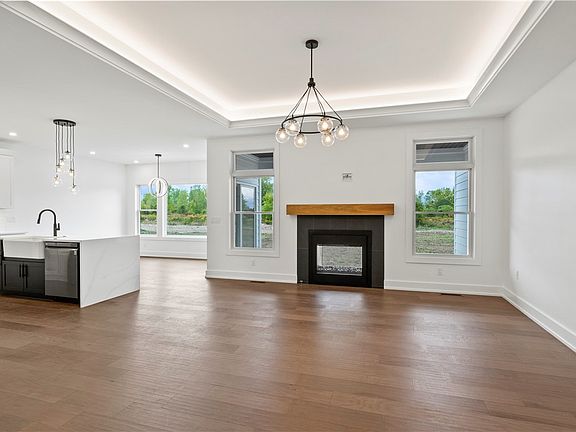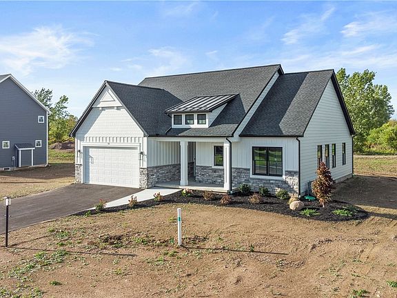 Gorgeous New Built Contemporary Ranch 3 bedroom home with 2 full baths. 3rd bed/office there is no closet, 9 foot ceilings, 7' solid 3 panel doors,Anderson 400 series windows,Wolf designer kitchen cabinets,pot filler,subway tile back splash, under cabinet lighting,stainless steel appliances- 36" Chef's gas 6 burner range,Quartz counters,farm sink,covered back porch w/ double sided gas fireplace to living room, Living room with lighted trey ceiling, engineered wood flooring, Master bedroom w/ light trey ceiling, walk-in closet and master bath w/ porcelin flooring and walk-in shower,designer plumbing & lighting fixtures,forced air units with central AC,1st floor laundry,Navien on-demand water system,EV hook up prep-package, Surveillance camera prep-package, Nest thermostat,motion censored closets,LED puck lighting throughout,Basement laminate flooring w/egress window,James Hardie board siding with stone accent,25 year architectural shingle roof,outside soffit dusk to dawn lighting,Prop. taxes & assessment TBD