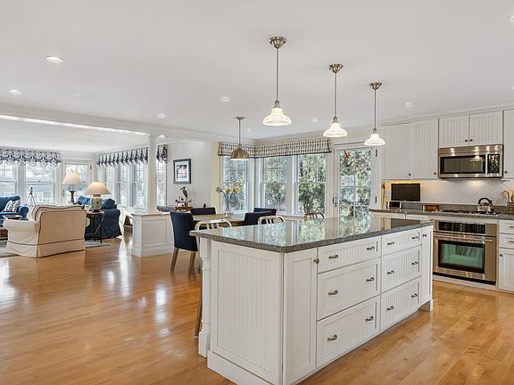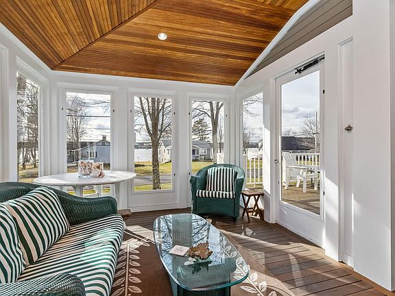 Step inside this stunning open concept home completely rebuilt in 2005 with gorgeous water and sunset views throughout! Located on a corner lot oriented for the views and large side yard. Neighborhood features a shared deep-water dock. This home offers all! Entertaining is easy in this open concept living space offering both formal and informal spaces easily open or closed off. A true cooks kitchen with huge island, custom cabinetry, granite counters and SS appliances including wet bar with Sub Zero beverage fridge. Outdoor living is easy with mahogany deck, automated awning, fabulous screened porch with real window inserts to extend the season and lovely mahogany bead-board ceiling; all with water views. Intimate living room offers wood burning fireplace with decorative star medallions carried throughout the living space. Master Bedroom suite designed to take in the views and features a master bath with radiant heated floor, walk-in shower and Water Works soaking tub! 3 additional good sized bedrooms, fabulous closet and storage space including full walk-up attic with spray foam insulation and huge basement. 1st floor office is perfect for working from home. Mud room offers 2 double closets and wonderful corner bench seat! Oversized 2-car garage has workshop space and storage above. Systems include FHA off boiler with central air, irrigation and wiring for a generator (no generator). Nothing to do but bring your belongings and enjoy Maine, the way life should be!
