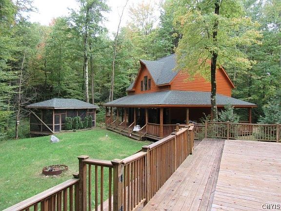 Incredible buying opportunity for lake front (over 600 ft. of frontage) for folks who enjoy kayaking/canoeing or small craft boating, fishing for trophy bass, panfish, pickerel. This lake is loaded with fish and is one of the best kept secrets in the north country. It was formerly owned by the Girl Scouts of America and is very private, protected and set up perfectly for fun on the water or in the woods. There are several unique features. The most impressive is an approximate 500 ft. peninsula that takes you out into the lake with a beautiful hiking trail leading to a large overlook deck/dock where you can sit and watch the ducks, geese, turtles, and bass feeding — it is INCREDIBLE! There are 6 bunk cabins on site and ready for large get-togethers! Bunks are included.