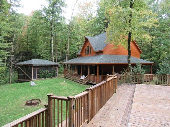 Incredible buying opportunity for lake front (over 600 ft. of frontage) for folks who enjoy kayaking/canoeing or small craft boating, fishing for trophy bass, panfish, pickerel. This lake is loaded with fish and is one of the best kept secrets in the north country. It was formerly owned by the Girl Scouts of America and is very private, protected and set up perfectly for fun on the water or in the woods. There are several unique features. The most impressive is an approximate 500 ft. peninsula that takes you out into the lake with a beautiful hiking trail leading to a large overlook deck/dock where you can sit and watch the ducks, geese, turtles, and bass feeding -- it is INCREDIBLE! There are 6 bunk cabins on site and ready for large get-togethers! Bunks are included.