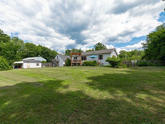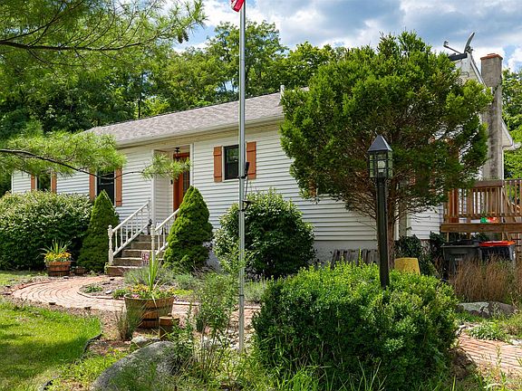 Beautiful oversized three bedroom, two bath ranch home on a level 1.36 acre lot in the desirable Rhinebeck School District. Enter through the brand new front door and hang your hat in the foyer, complete with beautiful tile floors. Hang a right into the large eat-in kitchen with updated HE appliances and plenty of counter and cabinet space for all of your cooking needs. Through the kitchen, is a formal dining area that opens up into a large family/living room complete with pristine hardwood floors and a propane fireplace, perfect for entertaining and hosting holiday gatherings. Down the hall you will find three generously sized bedrooms including a primary suite complete with a full bath. Both the primary bath and hall bathroom were recently updated. If you are looking for more, this home has it, with the finished rec-room in the basement complete with a bar, play area, TV room and two spare rooms perfect for a den, home office, home gym or clean dry storage space. The large detached two car garage is perfect for keeping your vehicles out of the elements and features a storage room above the garage in the loft area. Recent updates include: new doors, new windows, garage doors, appliances, smart light switches in the living room and primary suite, new driveway and a supplemental hot water source via the SunEarth system powered by the panels on the roof. This home is a must see and will not last!