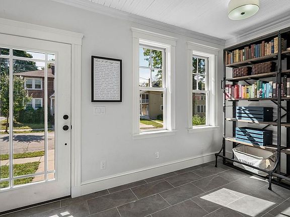This storybook Bungalow welcomes you with a bright mudroom. Step into this beautifully renovated eight room home with an open floor plan. The living room is highlighted by a fireplace and glass doors that open to the patio accented by stone walls and perennial gardens. The dining room opens on to a cozy balcony, a stylish chef's kitchen offers S/S appliances, ample storage and breakfast bar. A sun-splashed office and half bath complete the first level. The second floor offers three bedrooms and main bath. A finished lower level with full bath, hardwood floors, central air, one car garage, convenience to schools, public transportation and shops enhance this home.