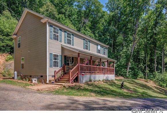 Very spacious home with large room sizes, including enormous master and massive kitchen! Year-round mountain views, open floorplan, zoned HVAC, flat parking, and covered deck facing the view. Great price for the square footage! Incredibly private, yet only 6 miles to VA Hospital, Ingles, and Hwy 70.
